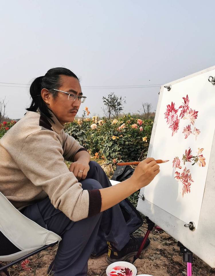 刘辉在曹州牡丹园进行牡丹写生
