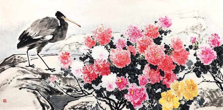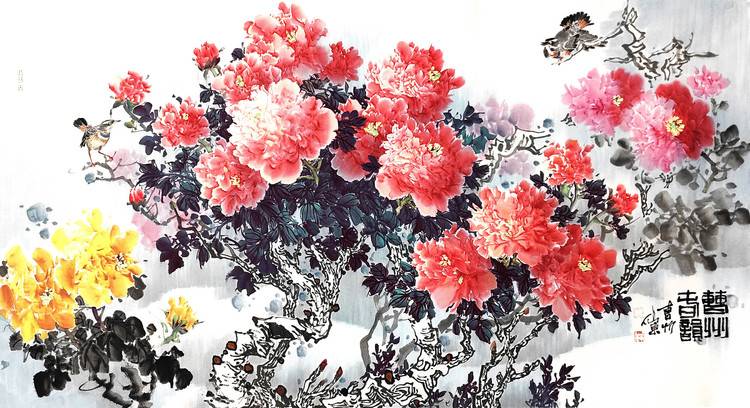 国画牡丹六尺《曹州春韵》